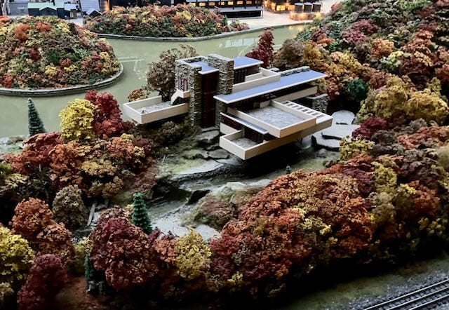 I’ve visited Fallingwater. I’ve boarded an incline and taken it for a ride many times. I’ve walked along grating, steep stairs and catwalks at a steel mill. Observing Western Pennsylvania in miniature isn’t exactly like flying over some of the world’s capitalist wonders. Yet being at liberty to stop, concretize and contextualize a model in three dimensions from various distances and angles, and to read stories at one’s discretion—at one’s own pace—can, in a way, activate and stir the imagination faster and more fully than flying through air. A visit can cause one to think, reflect and contemplate. Looking upon the human experience in miniature gives one an abiding sense of proportion, engineering, time, creativity and control. A miniature diorama can put you on top of the world. Particularly the miniature industrial models displayed in Pittsburgh.